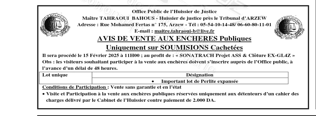 Il sera procédé à la vente au plus offrant et dernier enchérisseur le :