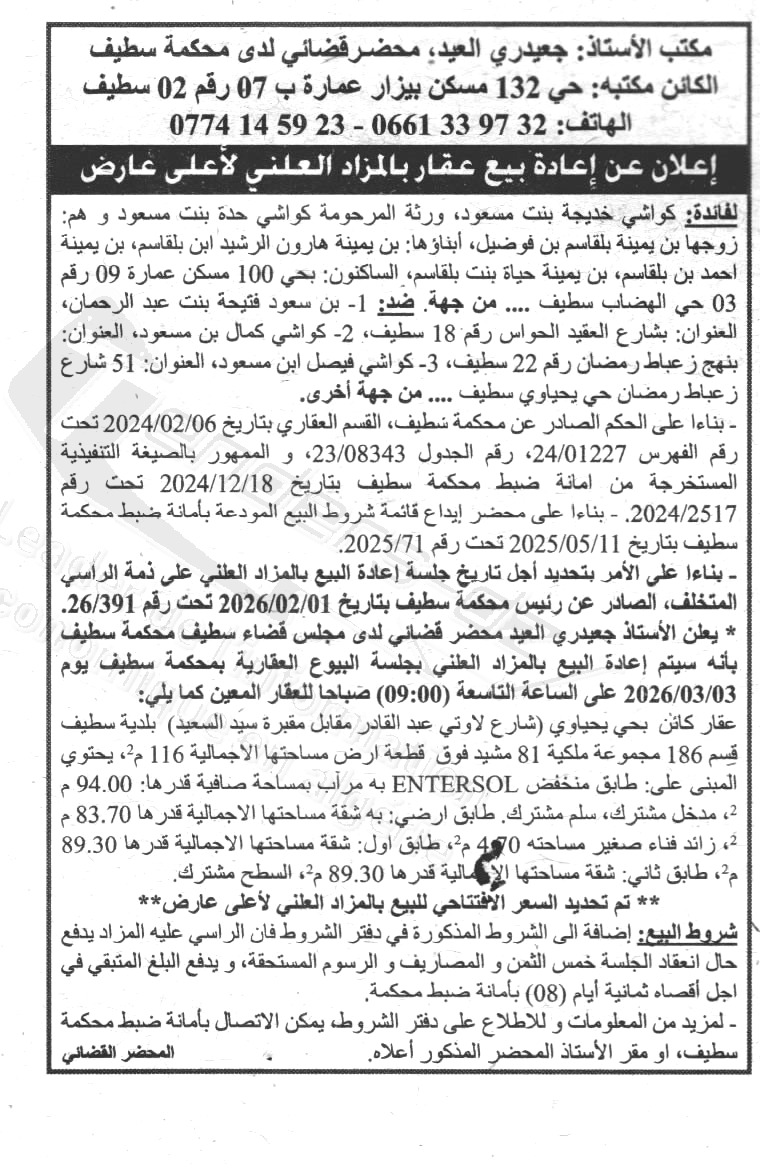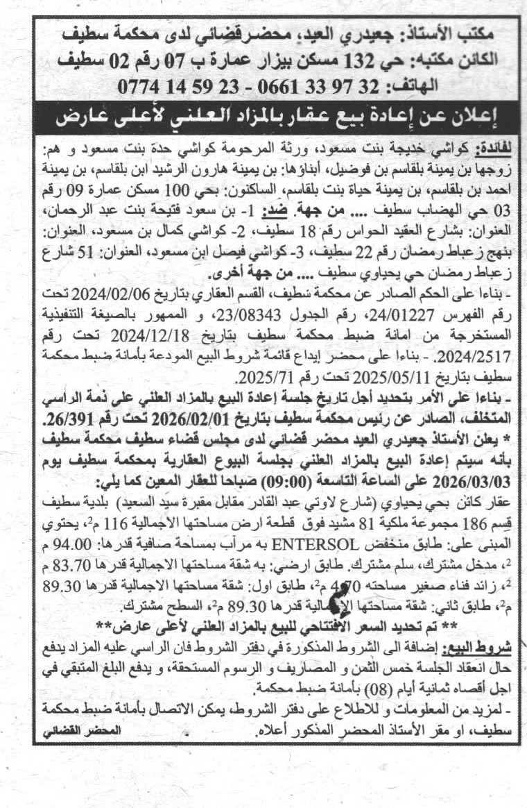 Il sera procédé à la vente au plus offrant et dernier enchérisseur le :