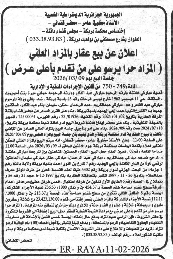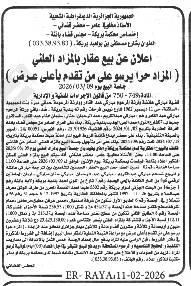 Il sera procédé à la vente au plus offrant et dernier enchérisseur le :