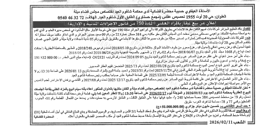 Il sera procédé à la vente au plus offrant et dernier enchérisseur le :