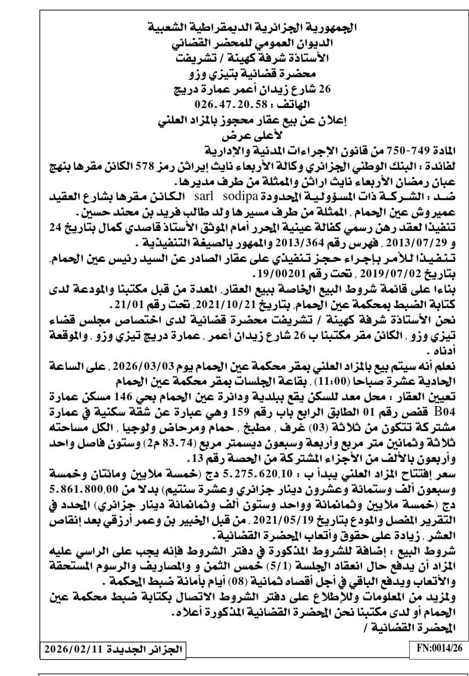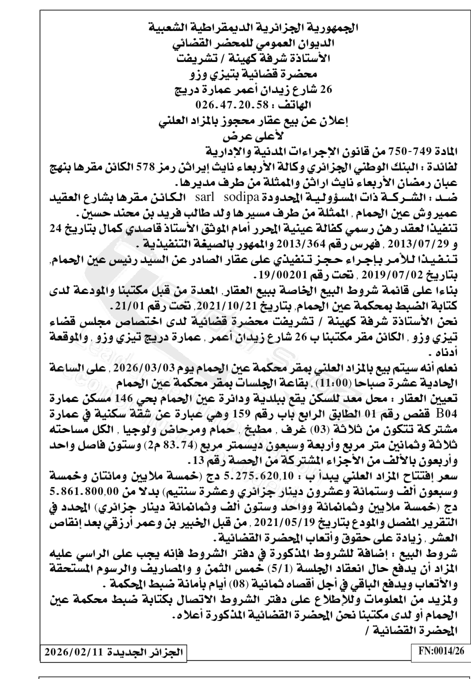 Il sera procédé à la vente au plus offrant et dernier enchérisseur le :
