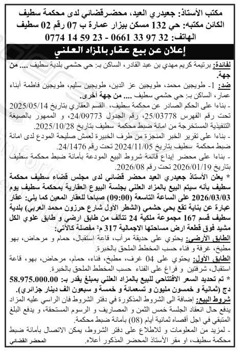 | Objet: Vente d'un immobilier | |