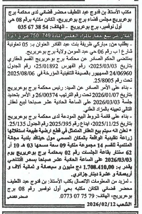 Il sera procédé à la vente au plus offrant et dernier enchérisseur le :