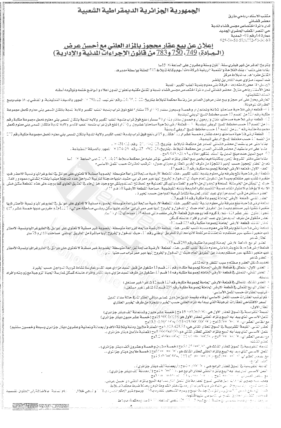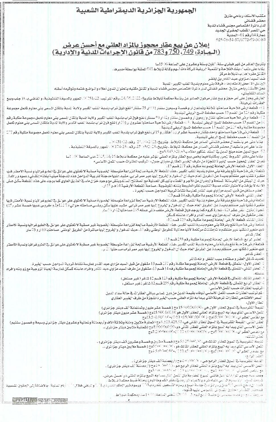 | Objet: Vente d'un immobiliers | |