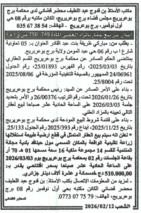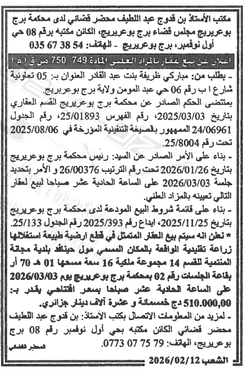 Il sera procédé à la vente au plus offrant et dernier enchérisseur le :