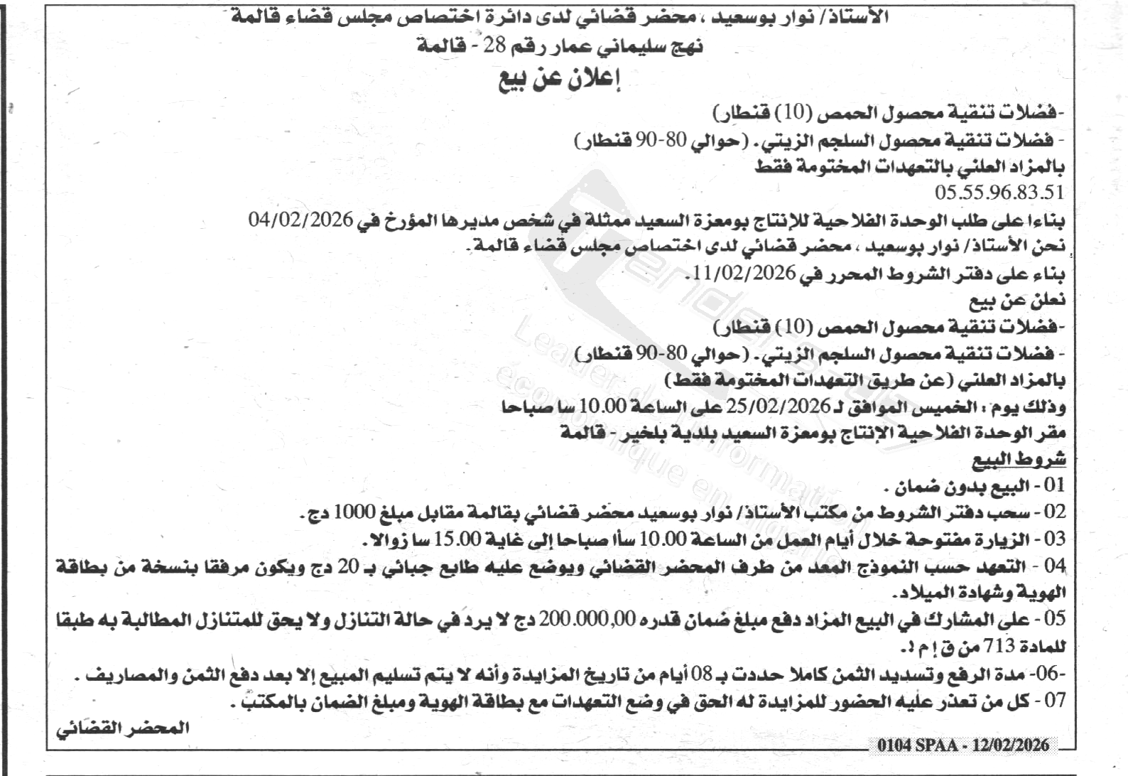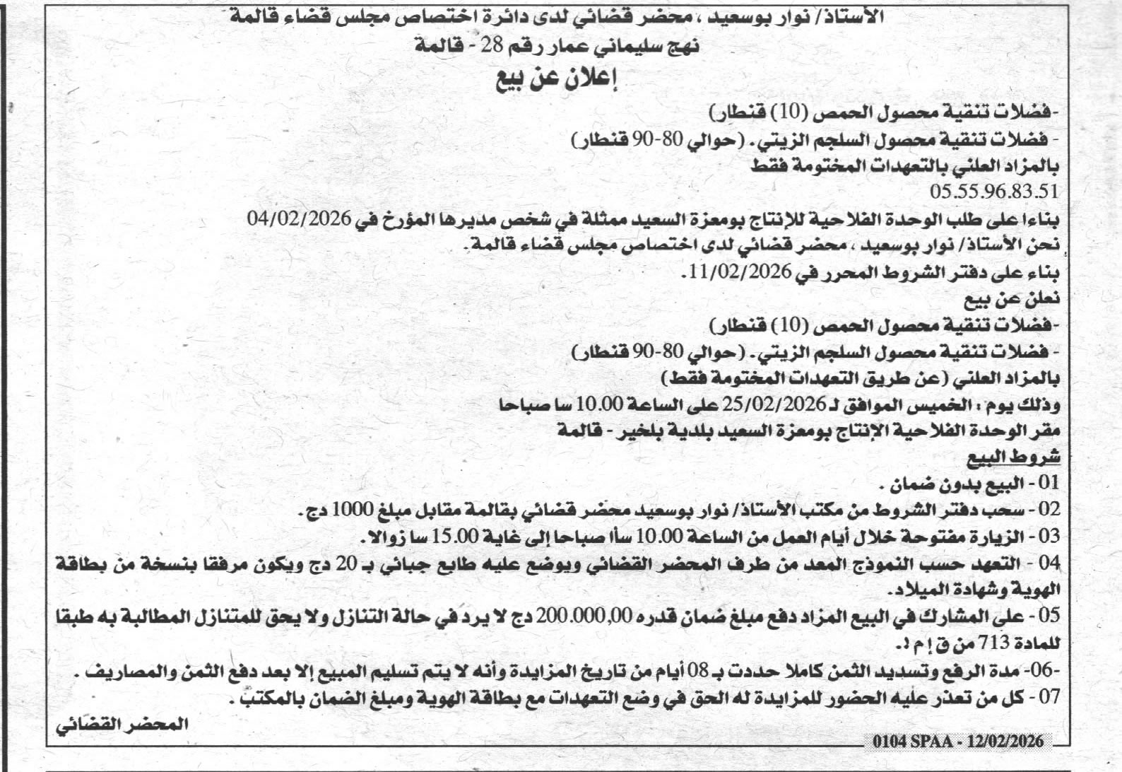 Il sera procédé à la vente au plus offrant et dernier enchérisseur le :