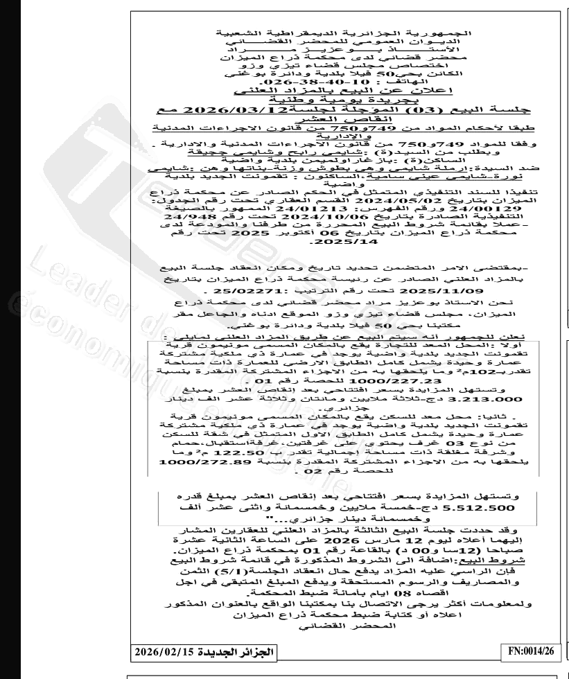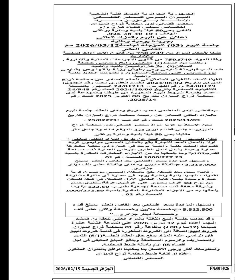 Il sera procédé à la vente au plus offrant et dernier enchérisseur le :