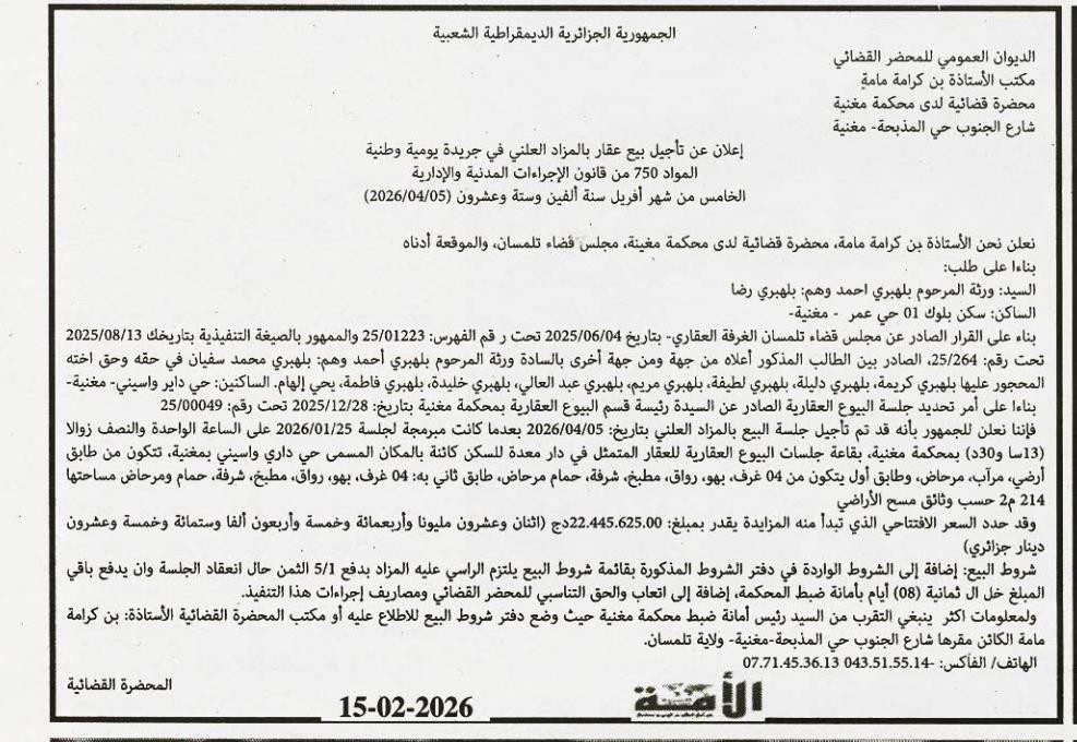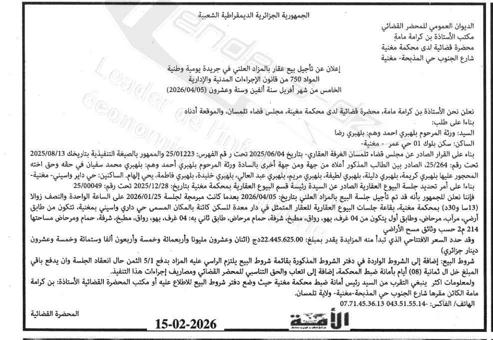 | Date Publication : 15/02/2026 | |
