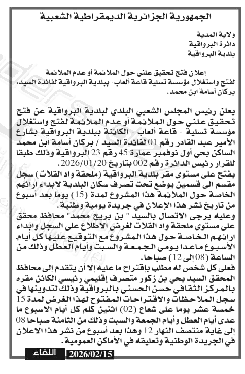 | Date Publication : 15/02/2026 | |