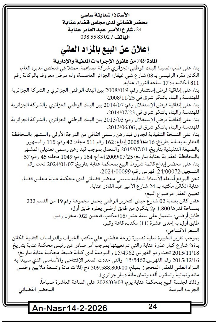Il sera procédé à la vente au plus offrant et dernier enchérisseur le :
