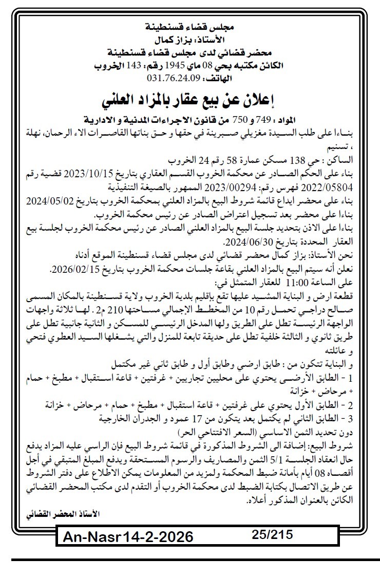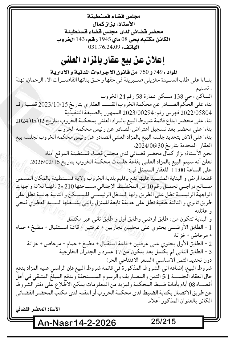| Paru dans le journal : النصر | |
