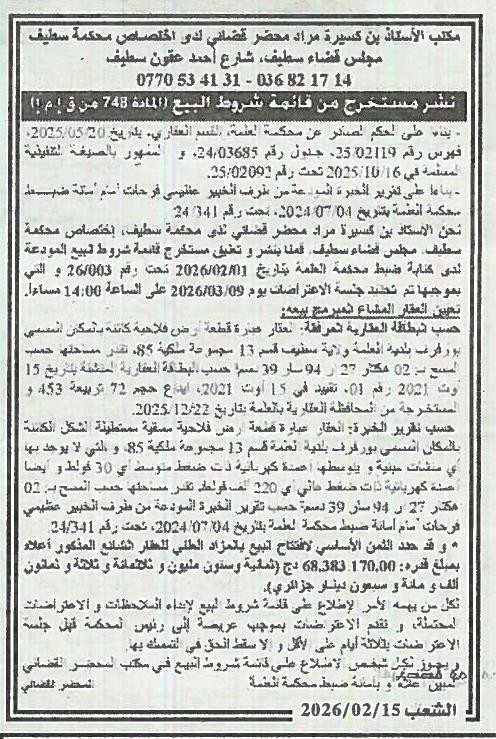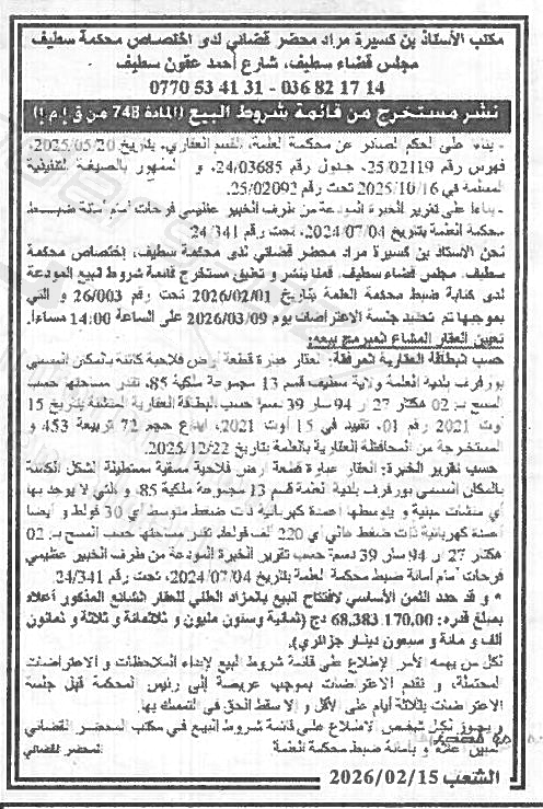 Il sera procédé à la vente au plus offrant et dernier enchérisseur le :