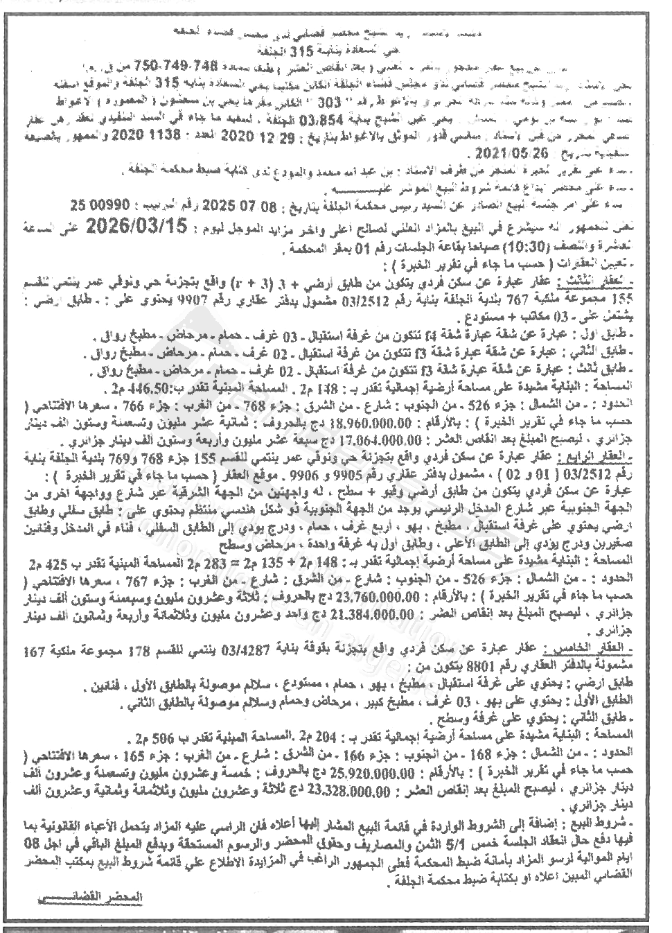 Il sera procédé à la vente au plus offrant et dernier enchérisseur le :