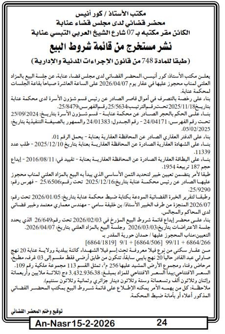 | Paru dans le journal : النصر | |