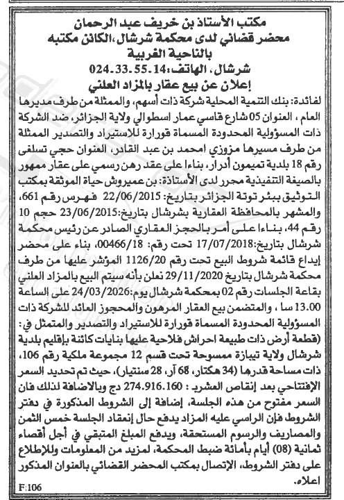 Il sera procédé à la vente au plus offrant et dernier enchérisseur le :