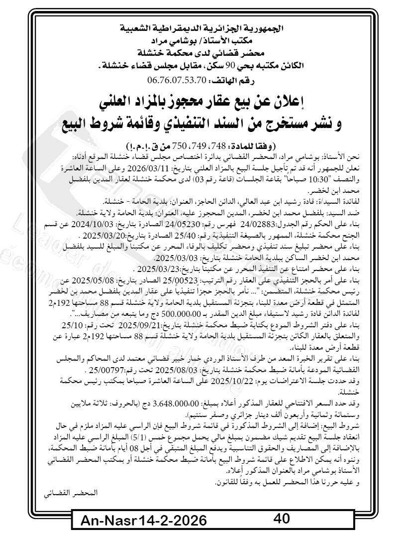 | Paru dans le journal : النصر | |