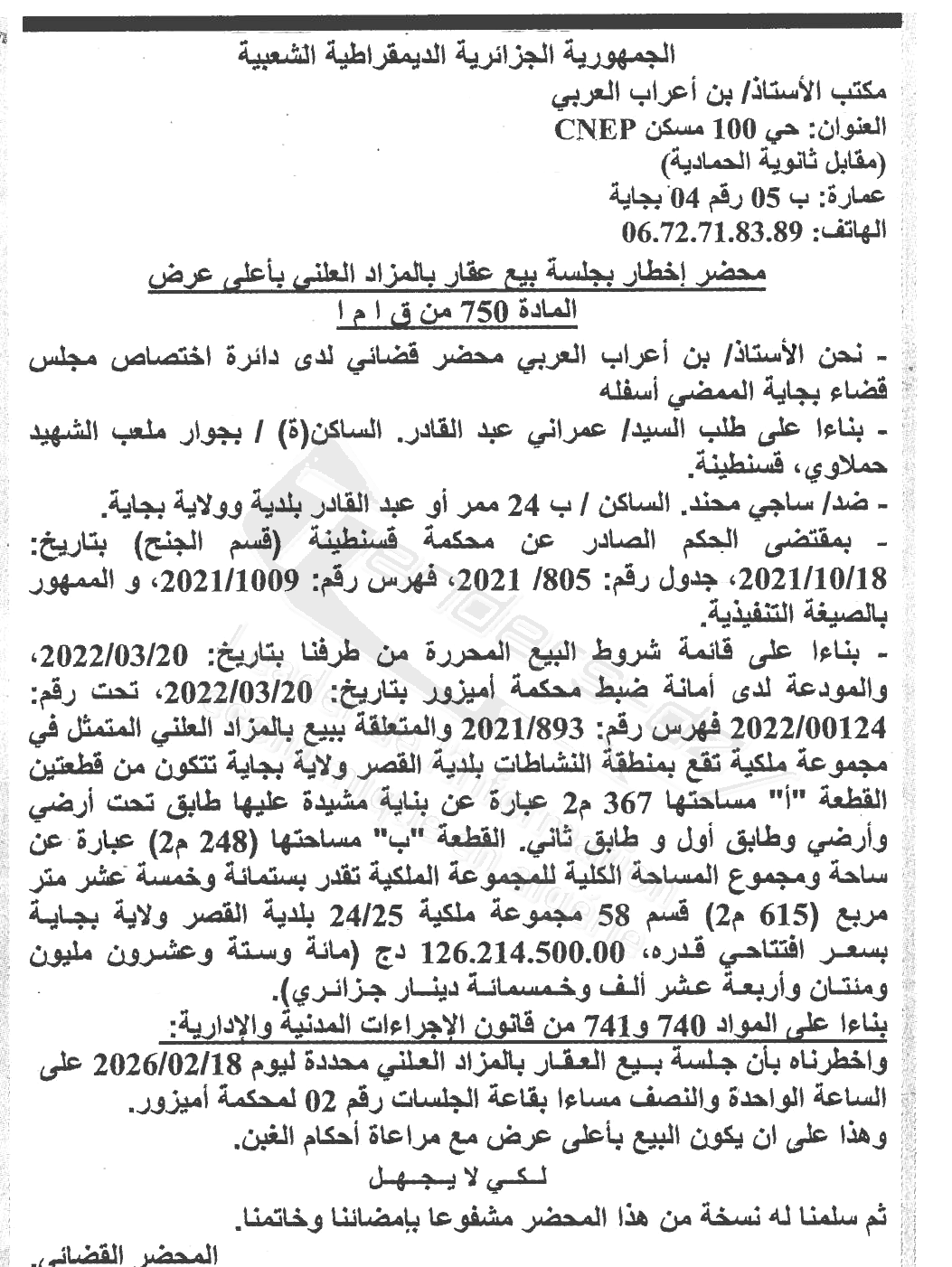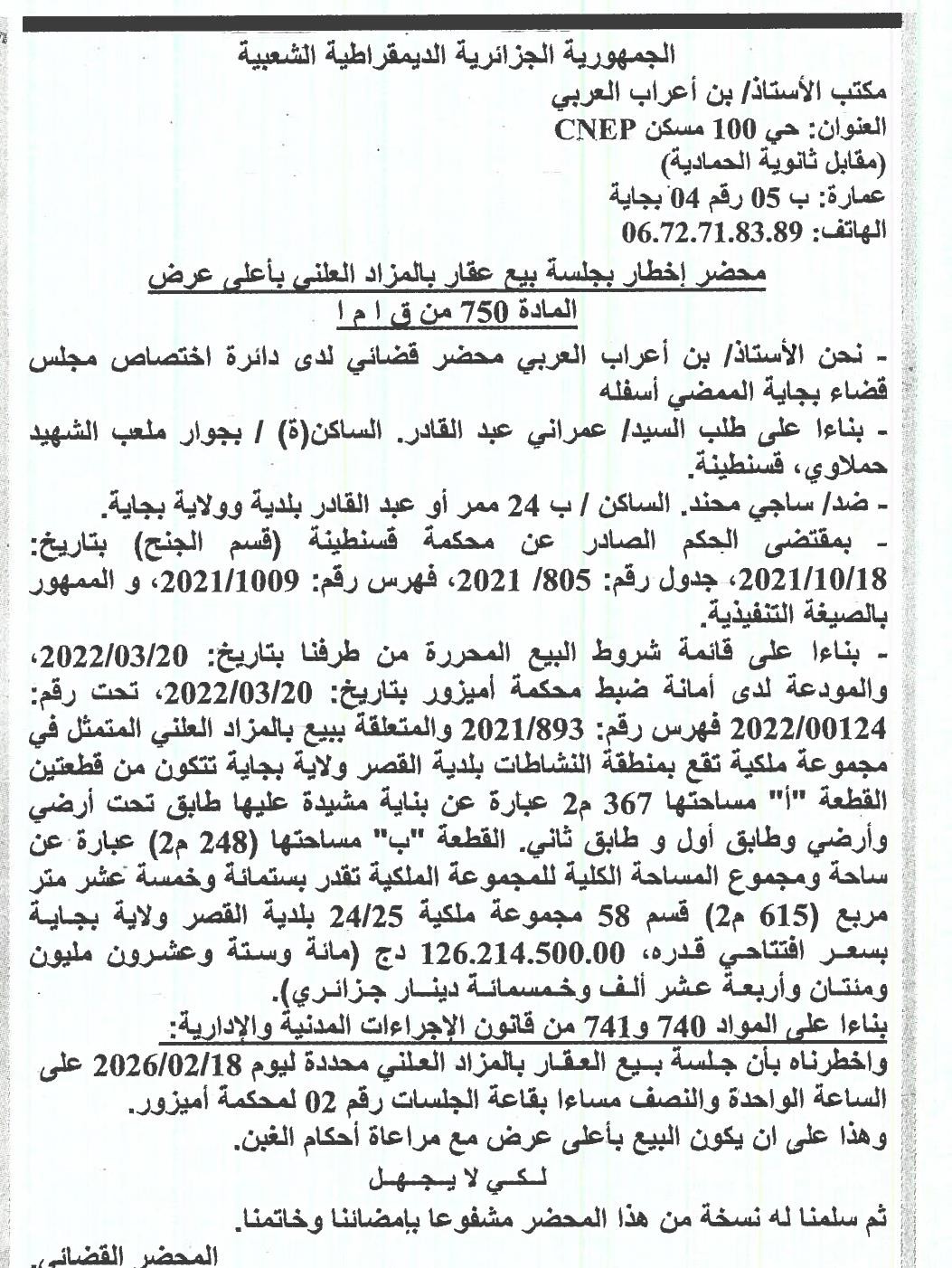 Il sera procédé à la vente au plus offrant et dernier enchérisseur le :