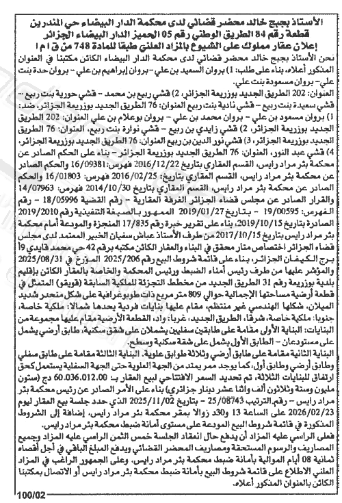 Il sera procédé à la vente au plus offrant et dernier enchérisseur le : 23/02/2026';