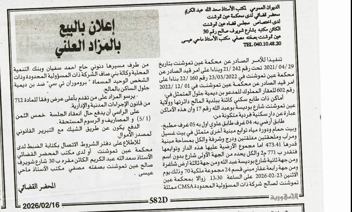 Il sera procédé à la vente au plus offrant et dernier enchérisseur le :