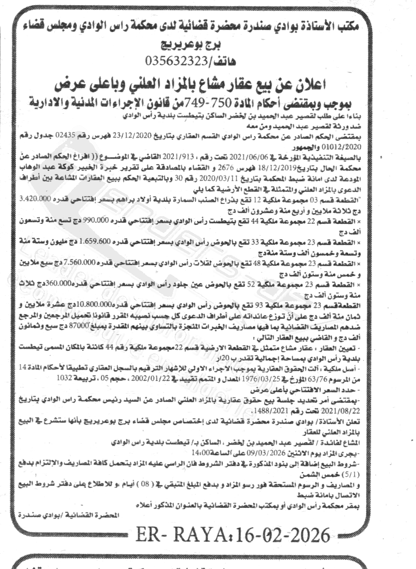 Il sera procédé à la vente au plus offrant et dernier enchérisseur le : 09/03/2026';
