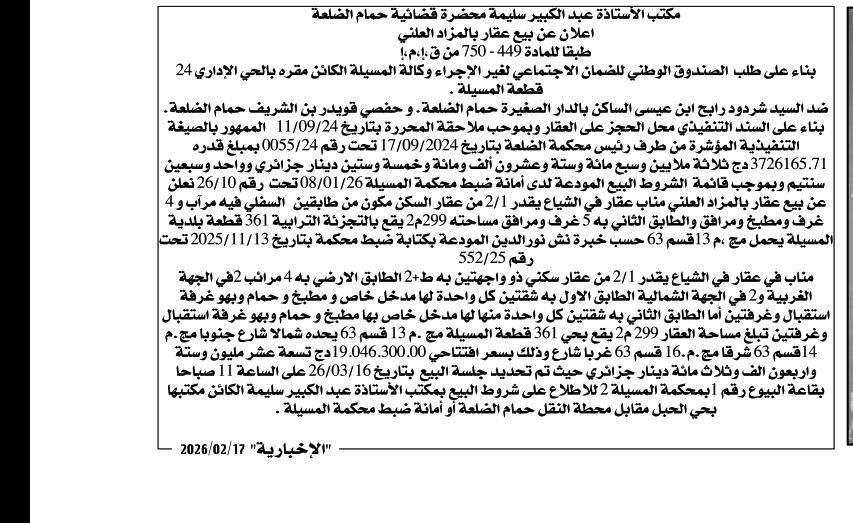 Il sera procédé à la vente au plus offrant et dernier enchérisseur le :