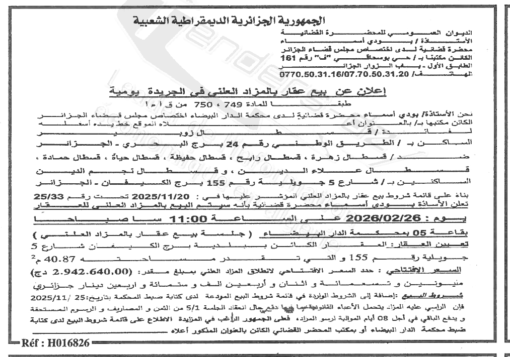 | Objet: Vente d'un immobiliers | |
