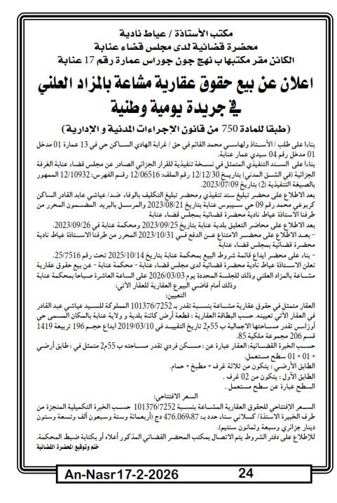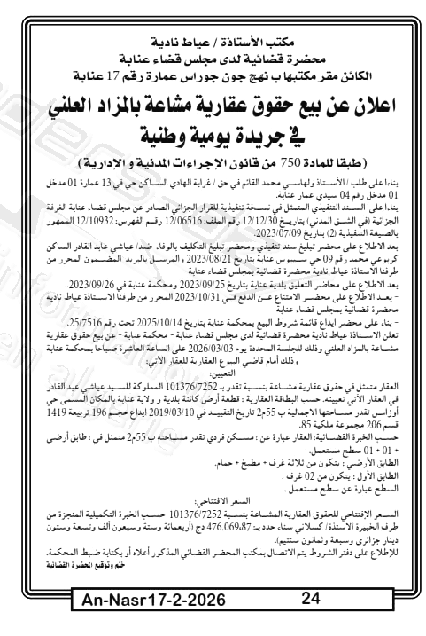 | Paru dans le journal : النصر | |