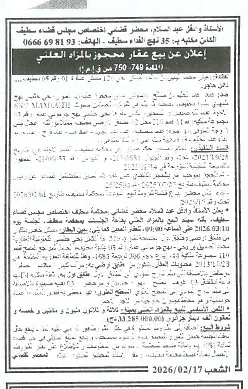 Il sera procédé à la vente au plus offrant et dernier enchérisseur le :
