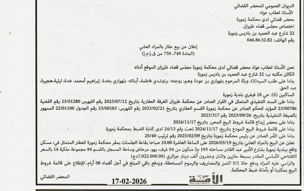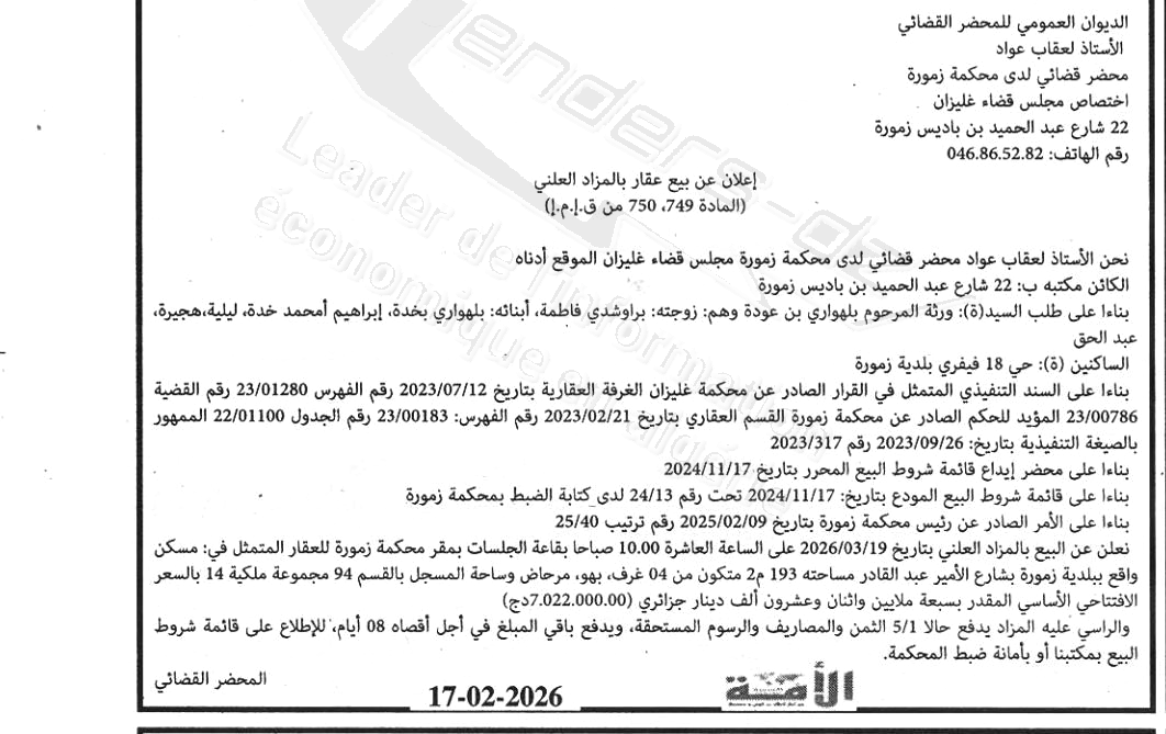 Il sera procédé à la vente au plus offrant et dernier enchérisseur le :