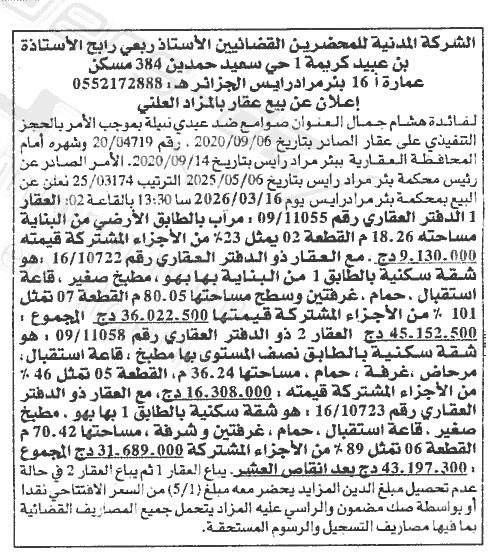 Il sera procédé à la vente au plus offrant et dernier enchérisseur le :
