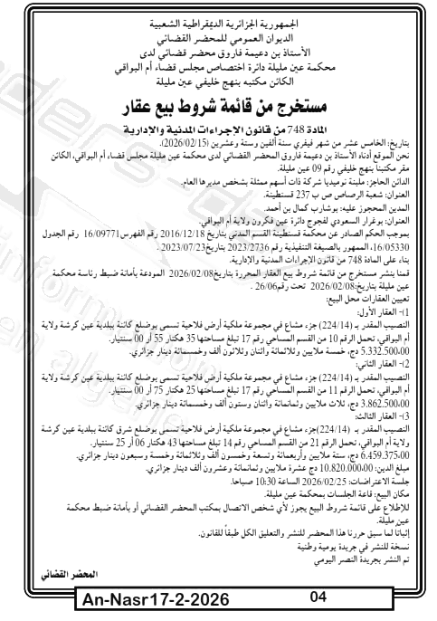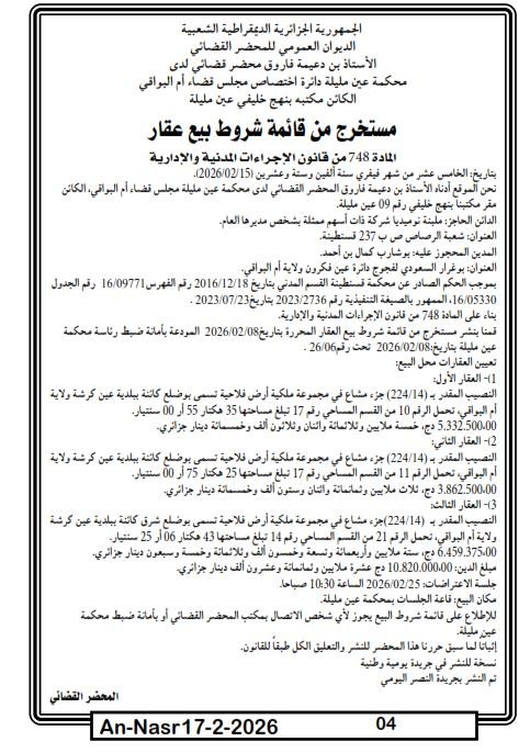 Il sera procédé à la vente au plus offrant et dernier enchérisseur le :