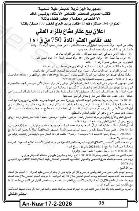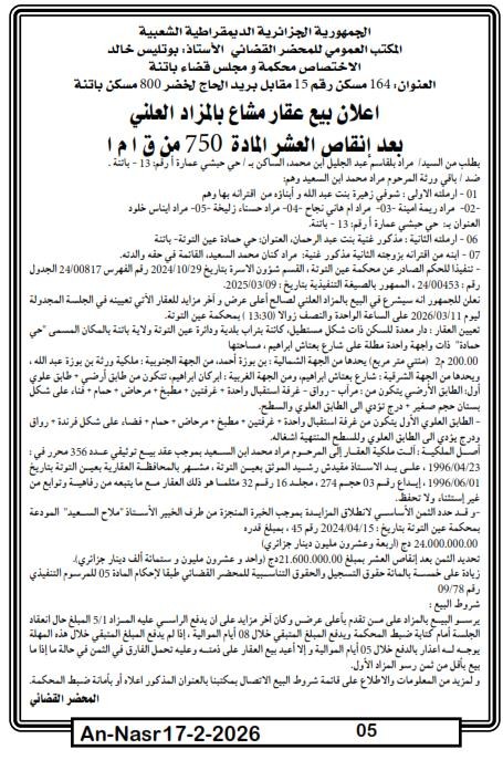 Il sera procédé à la vente au plus offrant et dernier enchérisseur le :