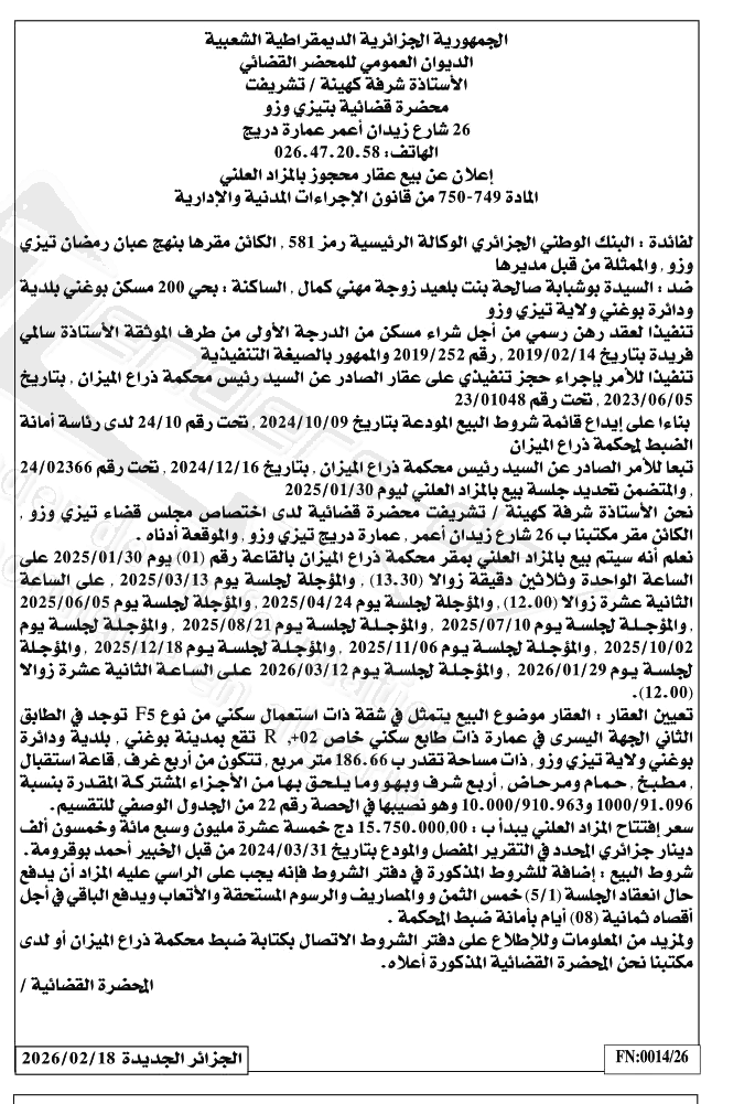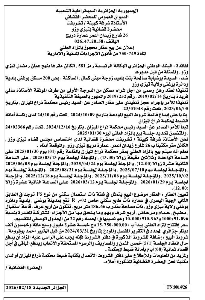 Il sera procédé à la vente au plus offrant et dernier enchérisseur le :