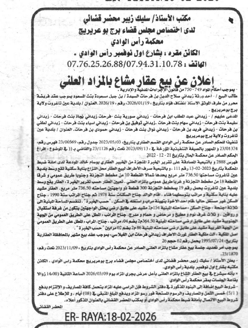 Il sera procédé à la vente au plus offrant et dernier enchérisseur le :