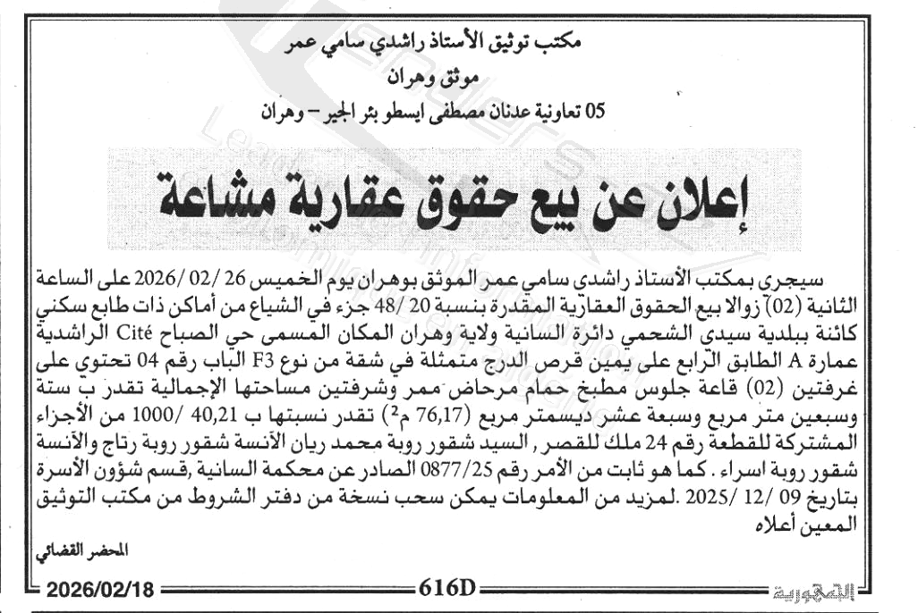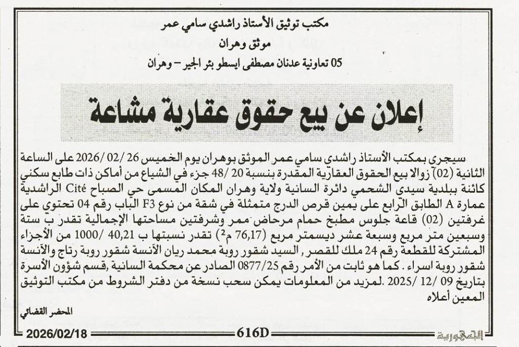Il sera procédé à la vente au plus offrant et dernier enchérisseur le :