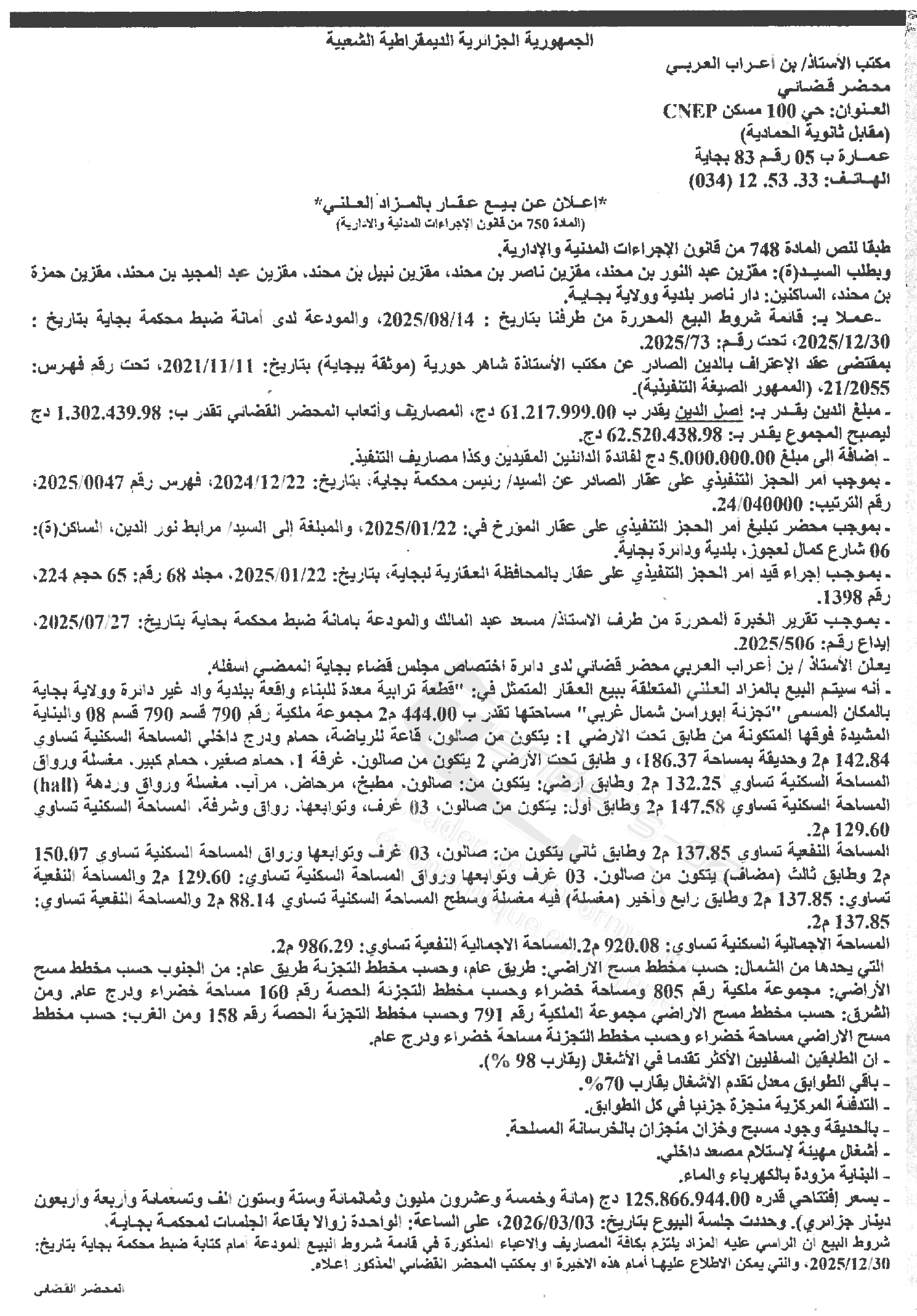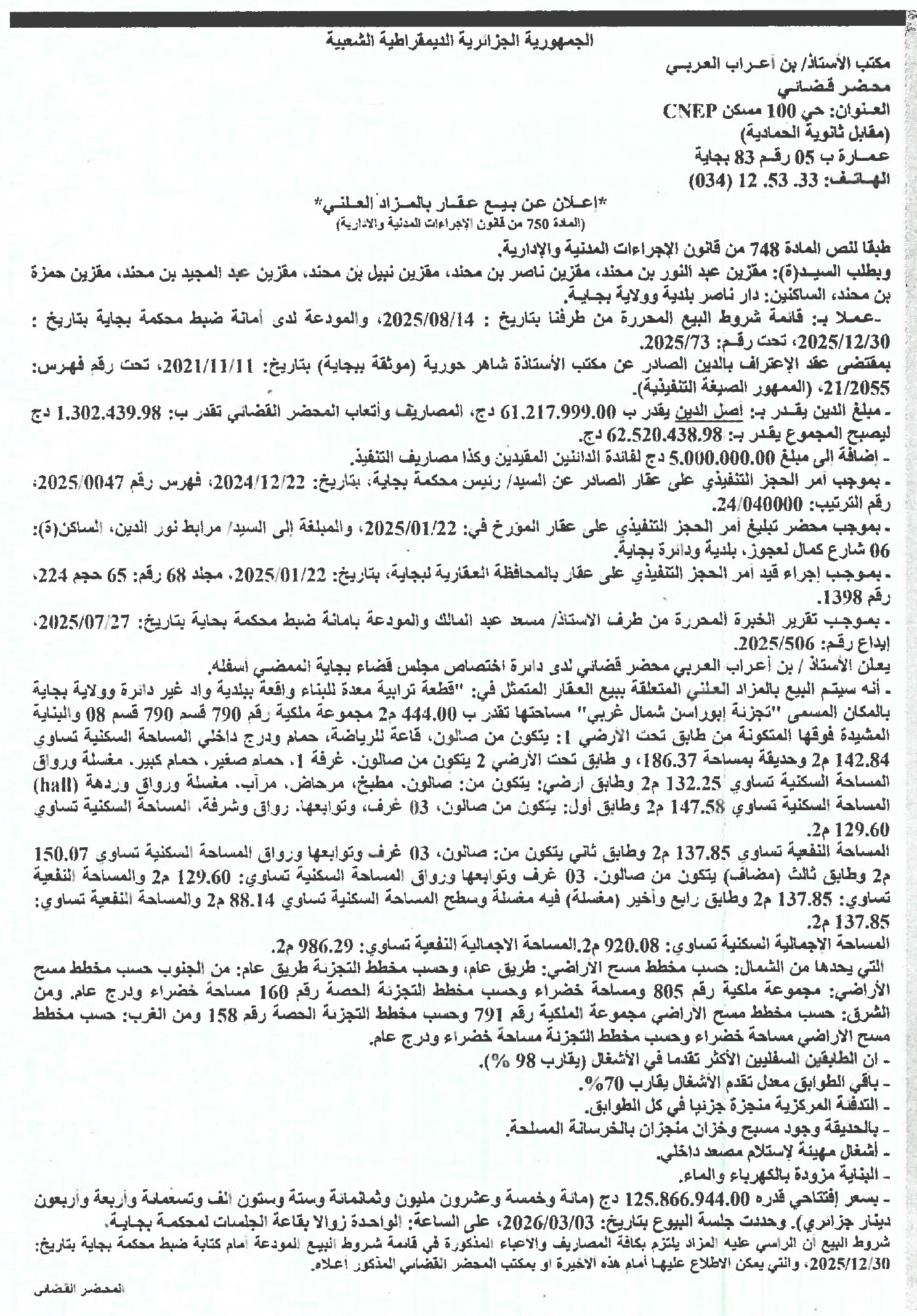 Il sera procédé à la vente au plus offrant et dernier enchérisseur le :