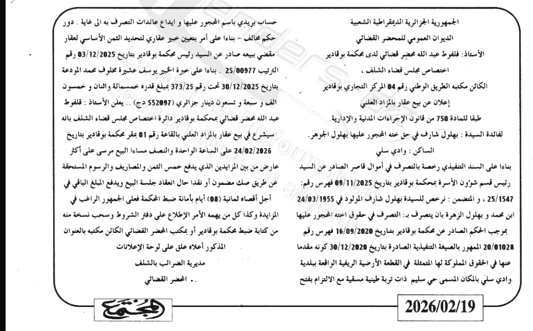 Il sera procédé à la vente au plus offrant et dernier enchérisseur le :