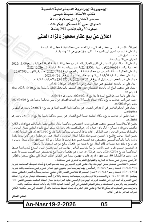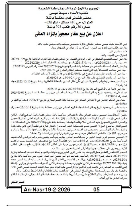 Il sera procédé à la vente au plus offrant et dernier enchérisseur le :