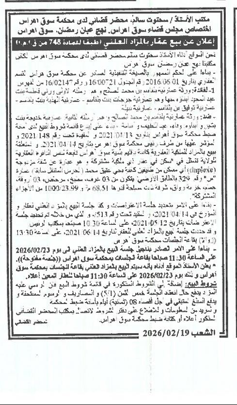Il sera procédé à la vente au plus offrant et dernier enchérisseur le :