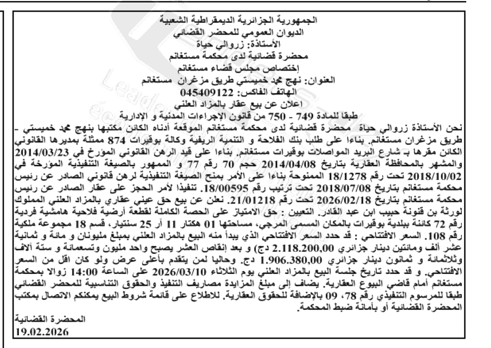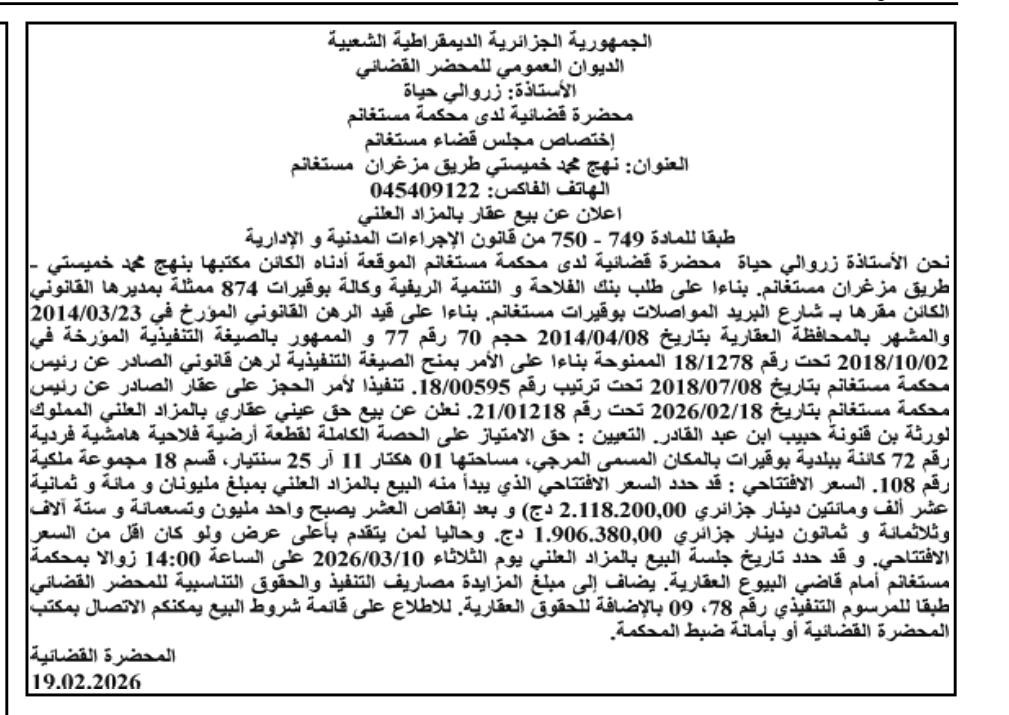 | Paru dans le journal : Le Carrfour d'Algerie | |