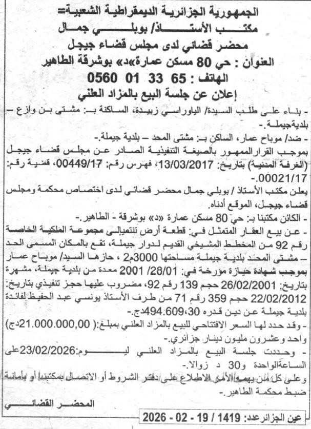 Il sera procédé à la vente au plus offrant et dernier enchérisseur le :