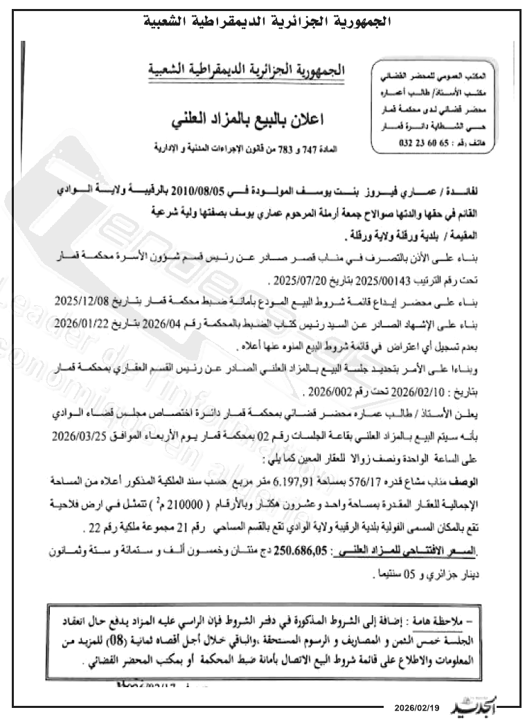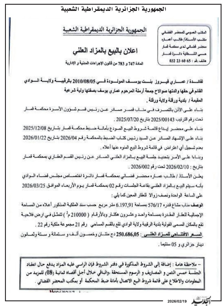 Il sera procédé à la vente au plus offrant et dernier enchérisseur le :