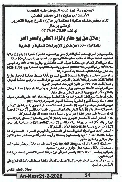 Il sera procédé à la vente au plus offrant et dernier enchérisseur le :