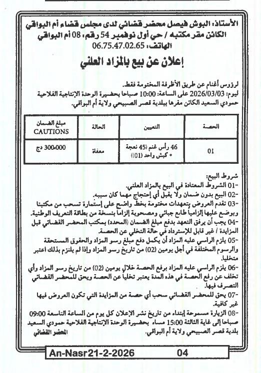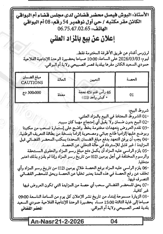 Il sera procédé à la vente au plus offrant et dernier enchérisseur le :