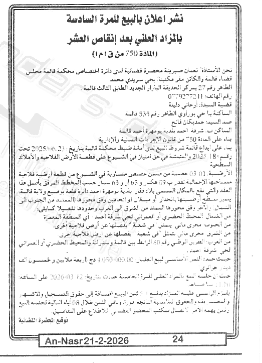 Il sera procédé à la vente au plus offrant et dernier enchérisseur le :