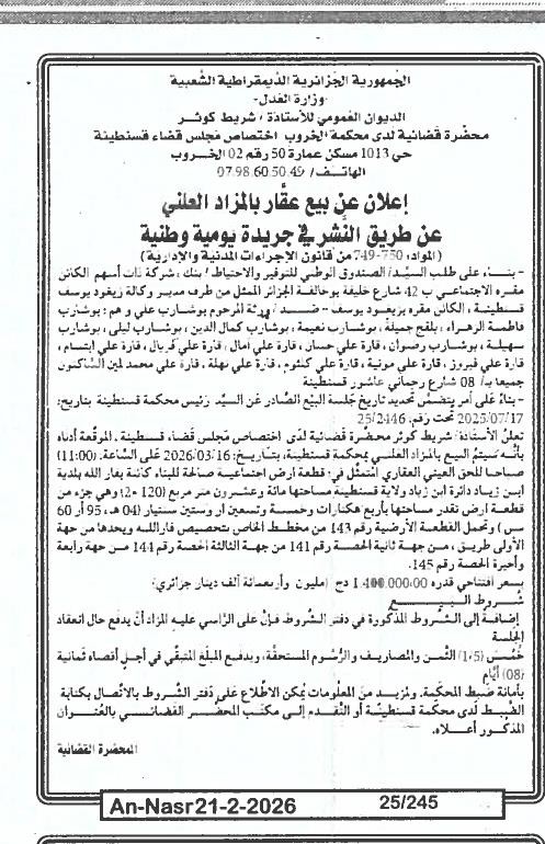 | Paru dans le journal : النصر | |