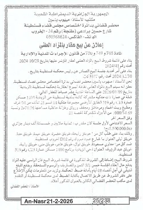 | Paru dans le journal : النصر | |