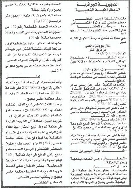 Il sera procédé à la vente au plus offrant et dernier enchérisseur le :