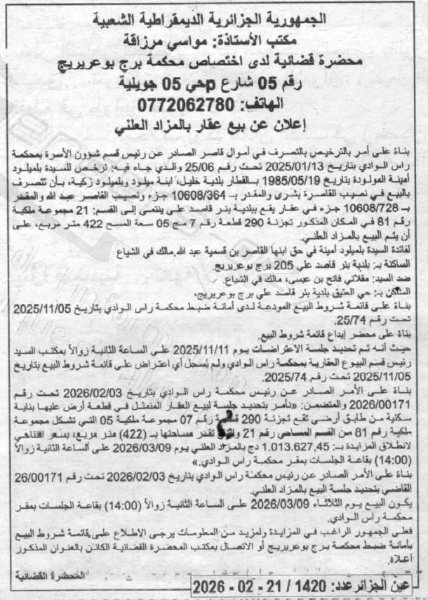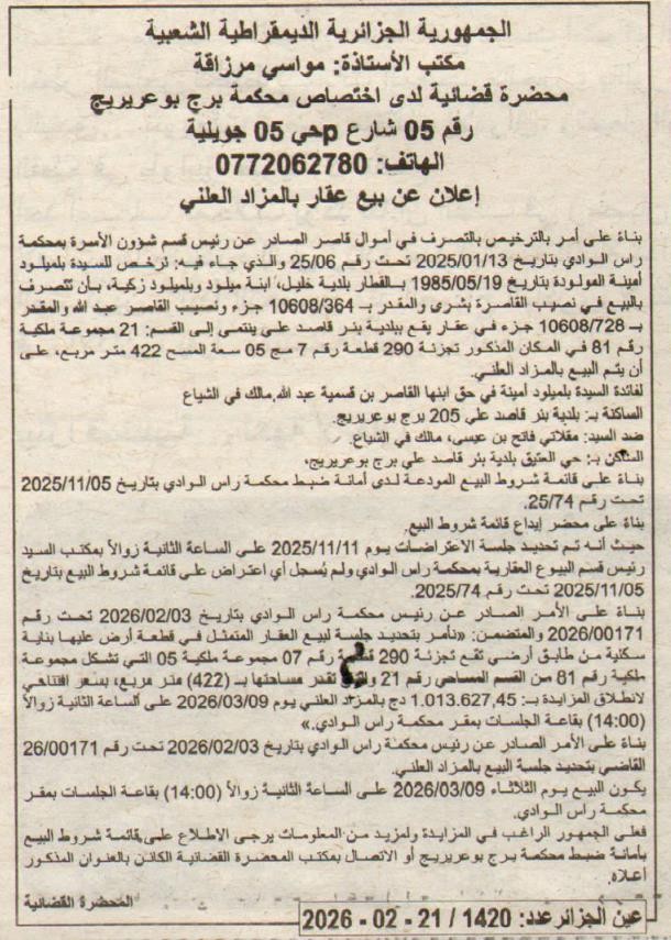 Il sera procédé à la vente au plus offrant et dernier enchérisseur le :