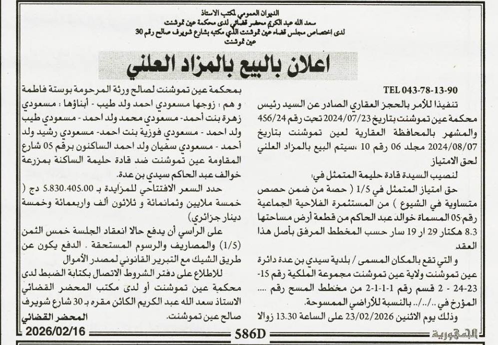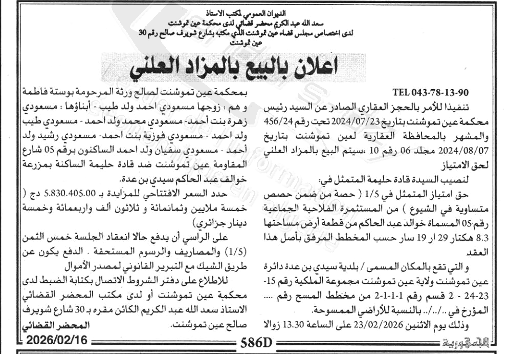 Il sera procédé à la vente au plus offrant et dernier enchérisseur le :
